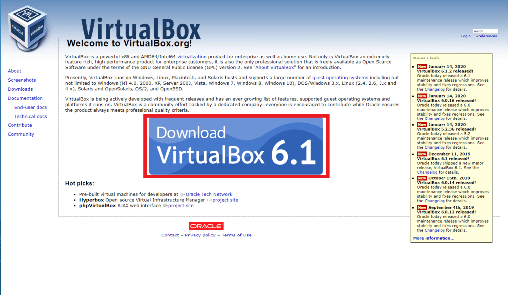B1: Vào trang https://www.virtualbox.org/ và click vào nút Download VirtualBox 6.1
