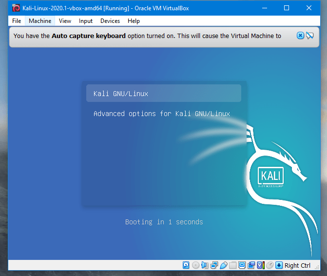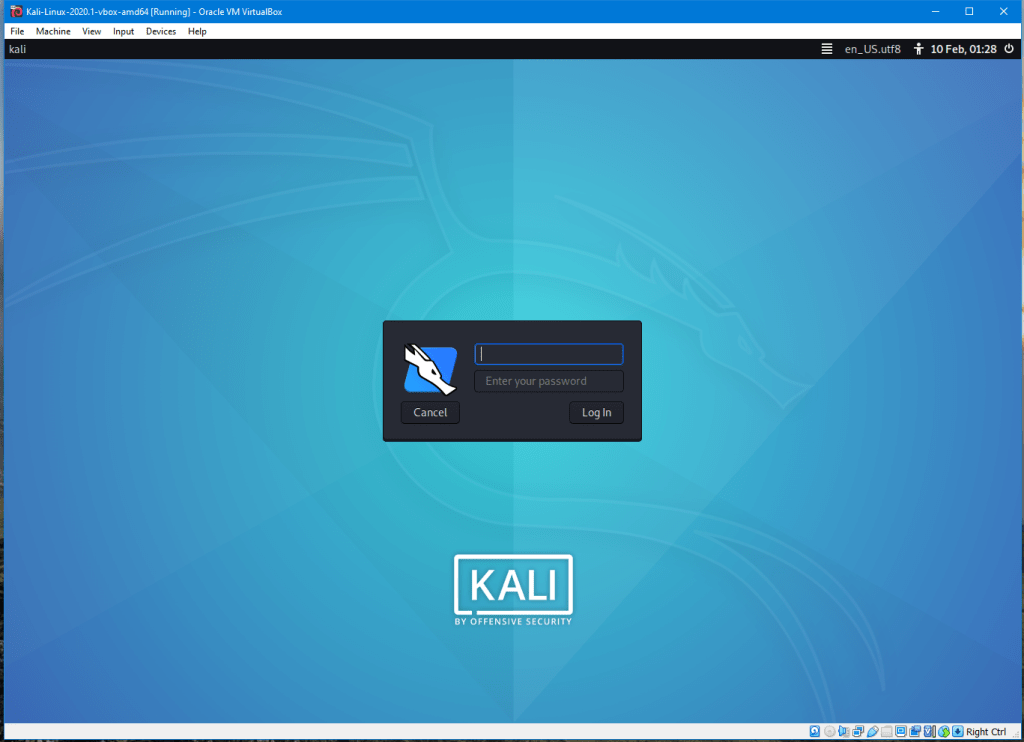 B10: Bạn click chuột vào cửa sổ Kali Linux và bấm Enter, lúc này chuột của bạn sẽ được chuyển thành chuột dùng cho máy ảo, do đó nếu bạn di chuột ra khỏi cửa sổ máy ảo, chuột sẽ biến mất. Bạn dùng nút Ctrl bên phải của bàn phím máy tính để thoát chuột khỏi cửa sổ ảo.