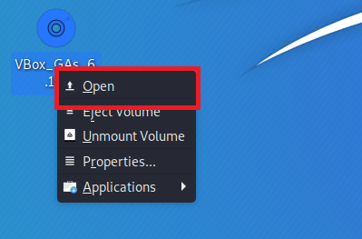 B2: Lúc này, sẽ có một icon hình cái CD xuất hiện trên màn hình Desktop của Kali Linux, các bạn clickk chuột phải vào icon và chọn Open