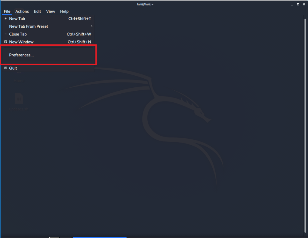B5: Đây là giao diện của Kali Linux terminal, cá nhân mình không thích màn hình trong suốt cũng như phần chữ hơi nhỏ so với mình. Mình sẽ sửa lại Terminal như các bước bên dưới, bạn nào không thích có thể đến bước 6.