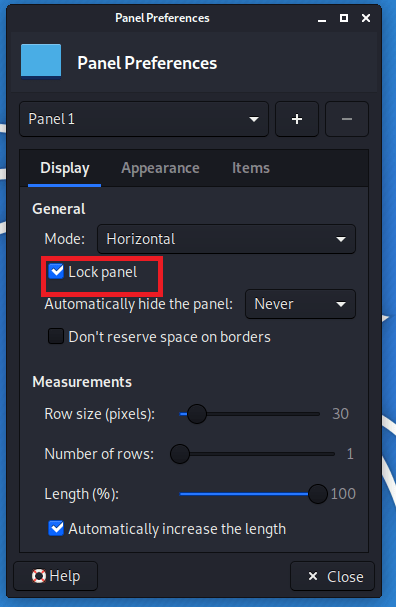 B20.4: Lặp lại bước 20.1, và click vào ô vuông kế bên Lock panel ở bước 20.2 để cố định menu vị trị dưới đáy.