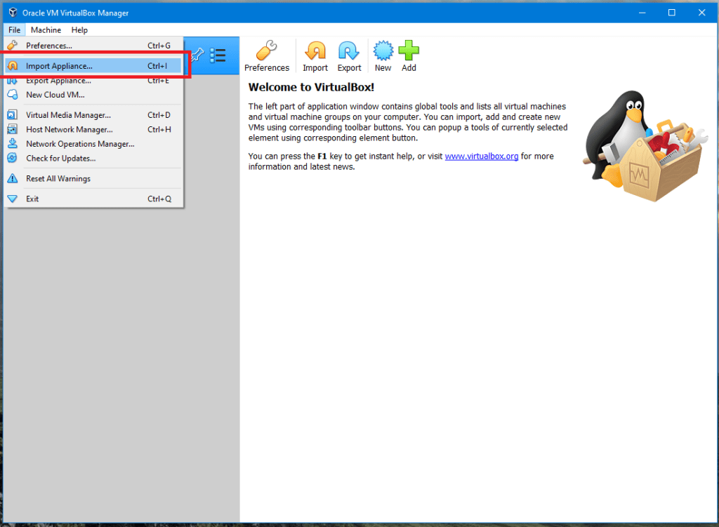 B2: Tại cửa sổ VirtualBox, chọn File > Import Appliance
