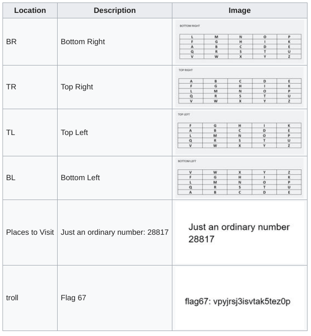 The robots.txt file was also revealing another location, which reveals flag 70: