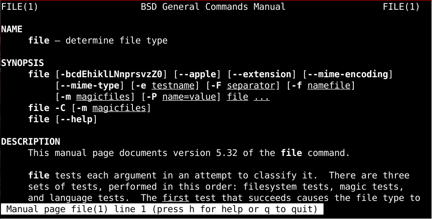 Bạn nào chưa biết lệnh file có thể sử dụng lệnh bên dưới để nghiên cứu cách sử dụng nhé.