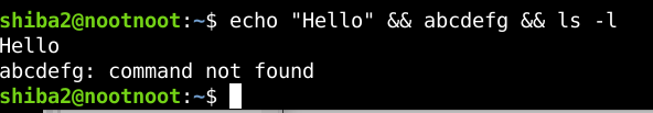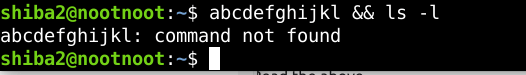 Ở ví dụ trên, như bạn thấy bên trái của operator “and” mình gõ một dãy giá trị vô nghĩa và bên phải operator “and” là lệnh ls -l. Vì dãy kí tự bên trái của mình không phải là một câu lệnh có nghĩa, dẫn đến cả câu lệnh không được thực thi.