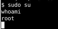 Sau khi dùng lệnh sudo su, chúng ta sẽ bị mất đi dấu $, mình thử dùng lệnh whoami để kiểm tra thì kết quả trả về thông báo account đang được dùng là root. Vậy là chúng ta đã nâng quyền quản trị thành công.