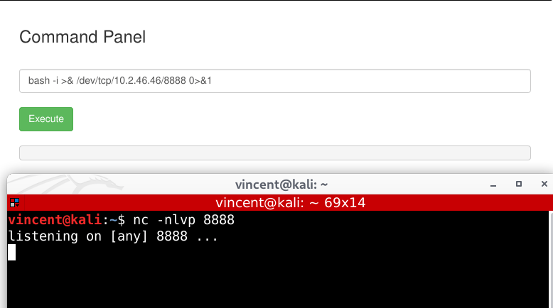 Với câu lệnh bash, sau khi chạy xong chúng ta không lấy được shell trả về, do đó chúng ta sẽ thử lệnh nc.
