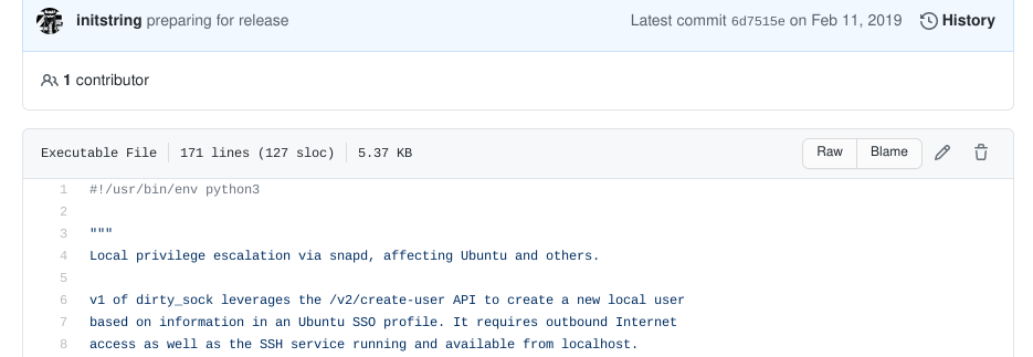 Tìm kiếm trên Google mình tìm thấy một kết quả khá tiềm năng đó là sử dụng lỗi dirty_sock để nâng quyền quản trị cho các máy Ubuntu version từ 18.10 về trước. Nhưng tìm hiểu sâu hơn mình thấy cả 2 phần mềm khai thác lỗi đều được viết bằng python3. Chúng ta có thể sử dụng vài ứng dụng Python để convert python3 thành elf nhưng do cách thực hiện khá phức tạp đối với các bạn trình độ căn bản, nên mình sẽ bỏ qua cách này.