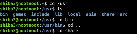 B3: Các bạn tiếp tục cd đến directory bin nằm bên trong /usr