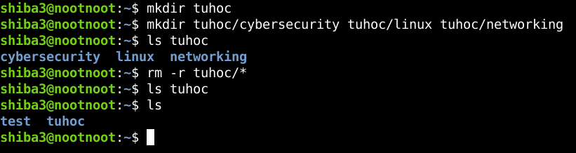 mkdir tuhoc/cybersecurity tuhoc/linux tuhoc/networking