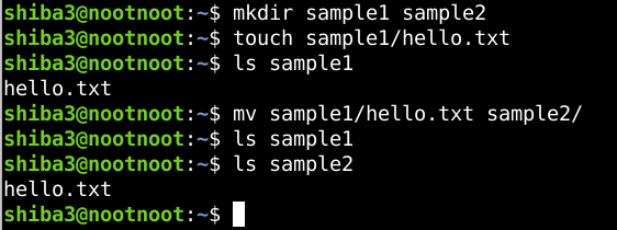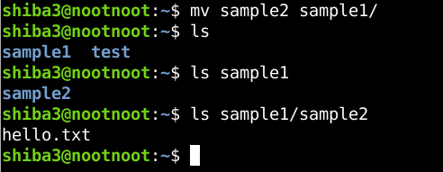 Chúng ta sẽ chuyển toàn bộ directory kèm file hello.txt từ HOME directory của shiba3 sang directory sample1