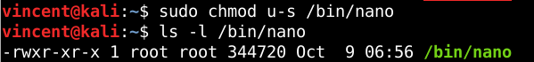 Để mô phỏng lại phần thực hành này, chúng ta sẽ set SUID cho Nano như sau: