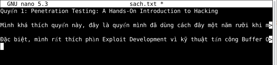 Ví dụ 2: Chỉnh sửa file sach.txt