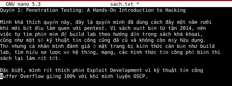 Cũng giống như Nano, Vim cũng là một trình text editor được cài đặt sẵn trên khá nhiều Linux distros. Tuy nhiên, Vim có phần khó xài hơn so với Nano vì bạn sẽ phải học khá nhiều các phím tắt để có thể thao tác dễ dàng trên vim. Vậy tại sao phải học Vim? Cá nhân mình thấy Vim có phần phổ biến hơn Nano, trên nhiều máy mình thực tập pentest, Nano có thể không có nhưng vim thì đến 90% là có.