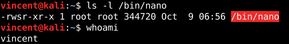 Chúng ta thấy bit “s” đã được thêm vào và account hiện tại của mình là vincent chứ không phải root nhé. Chúng ta sẽ bắt đầu thực hành như sau: