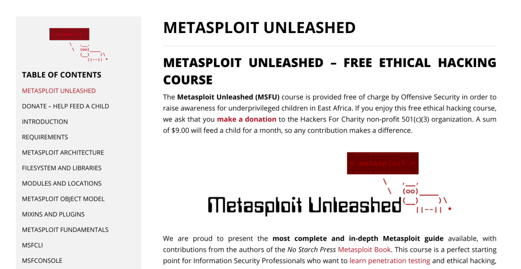 Đây là giáo trình hướng dẫn tự học Metasploit miễn phí của Offensive Security, công ty đã tạo nên hệ điều hành Kali Linux. Các bạn có thể truy cập vào giáo trình theo đường dẫn sau.