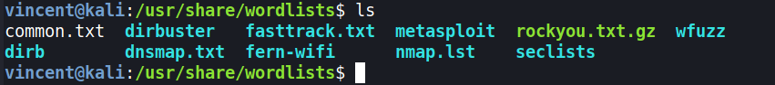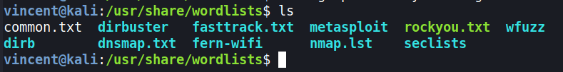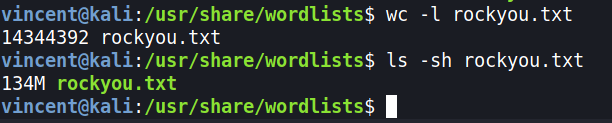 vincent@kali:/usr/share/wordlists$ sudo gzip -d rockyou.txt.gz