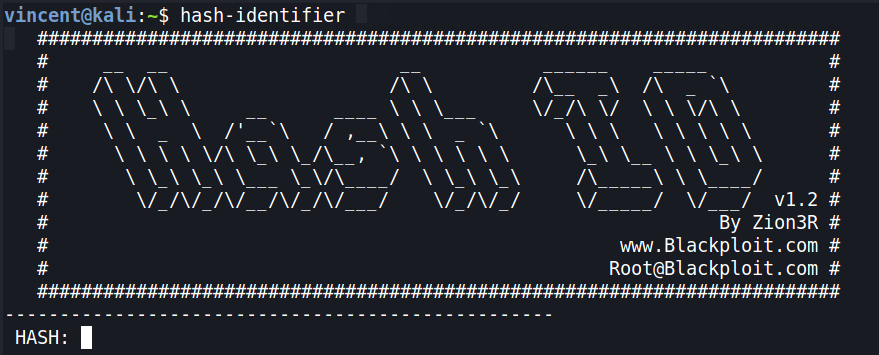 Cách sử dụng rất đơn giản, chỉ cần bạn copy và paste đoạn hash của bạn vào dòng “HASH:” và bấm enter. Hệ thống sẽ giúp bạn xác định thuật toán hash. Để thoát ra, các bạn ấn tổ hợp phím Ctrl + C