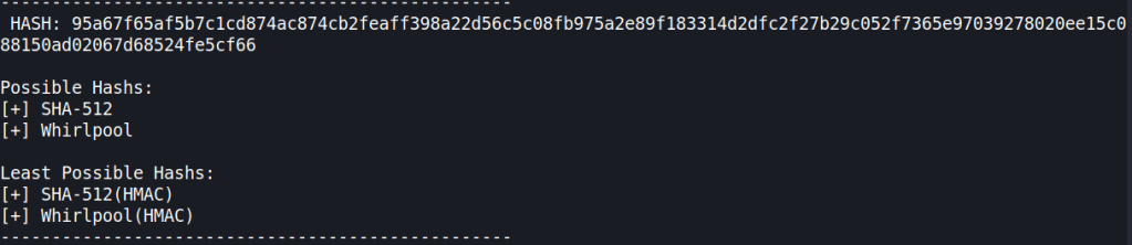 Với thuật toán hash Whirlpool, Hash Identifier đã dự đoán thuật toán hash chính xác.