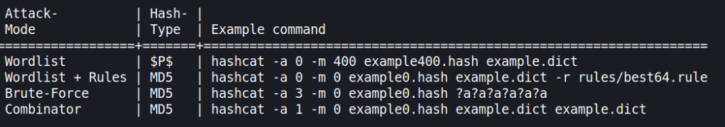 Hash cat hỗ trợ 4 hình thức crack hash: