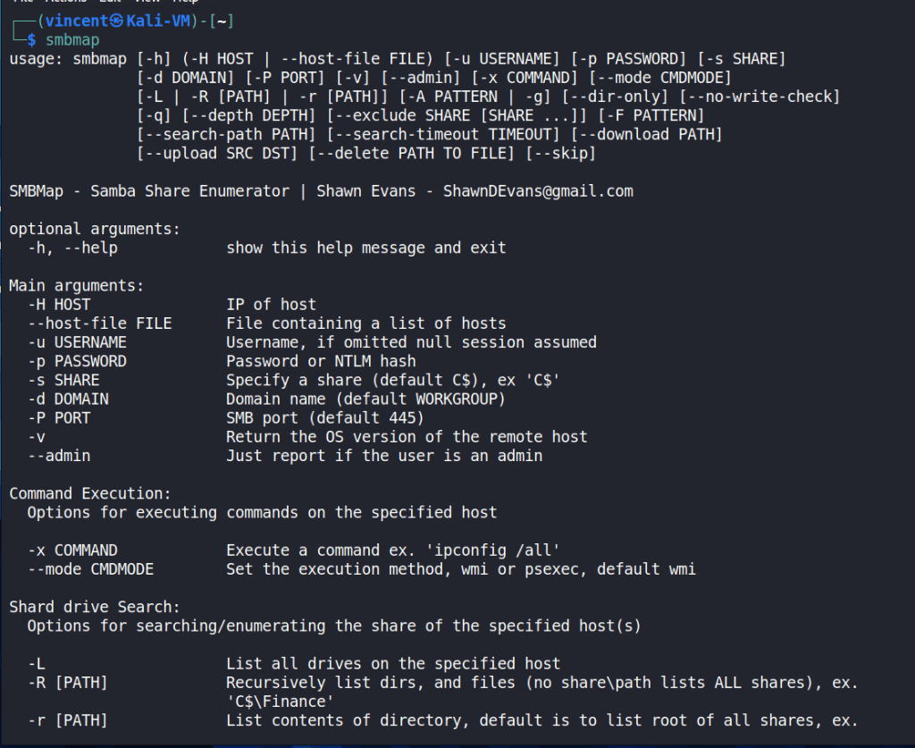 Nói cách khác, SMBmap có thể được sử dụng để tìm những dữ liệu nhạy cảm được lưu giữ trong các SMB servers và được share rộng rãi với các SMBclients.