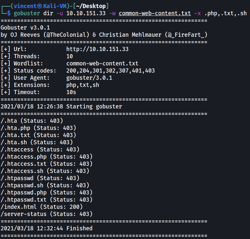 gobuster dir -u 10.10.151.33 -w common-web-content.txt -x .php,.txt,.sh