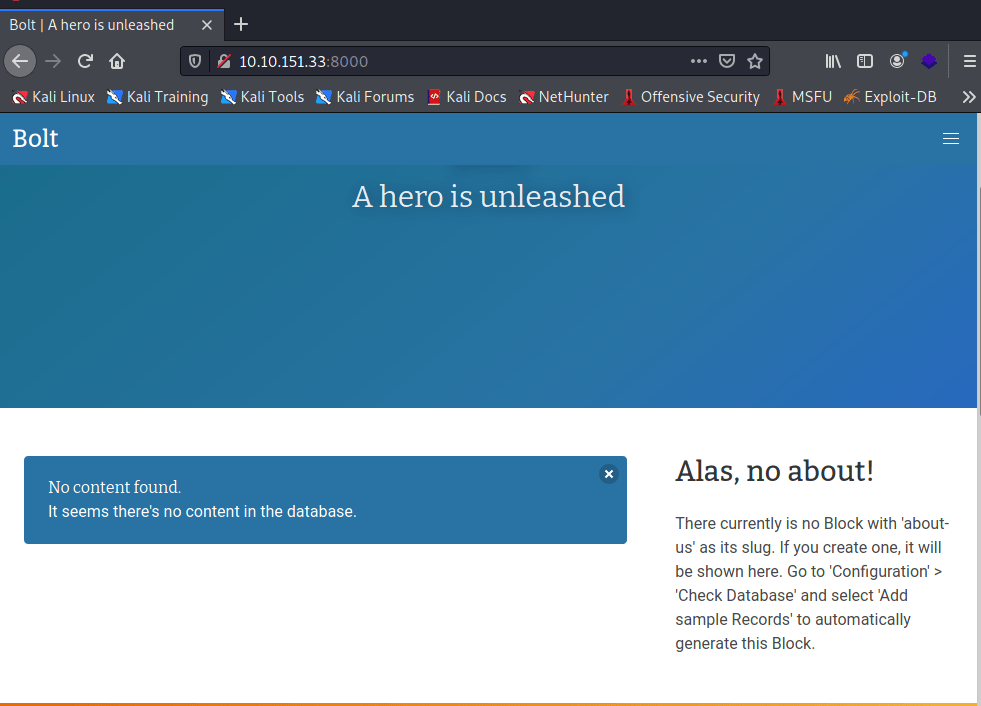 Khi đăng nhập vào port 80 của server Bolt, ta được kết quả như sau: