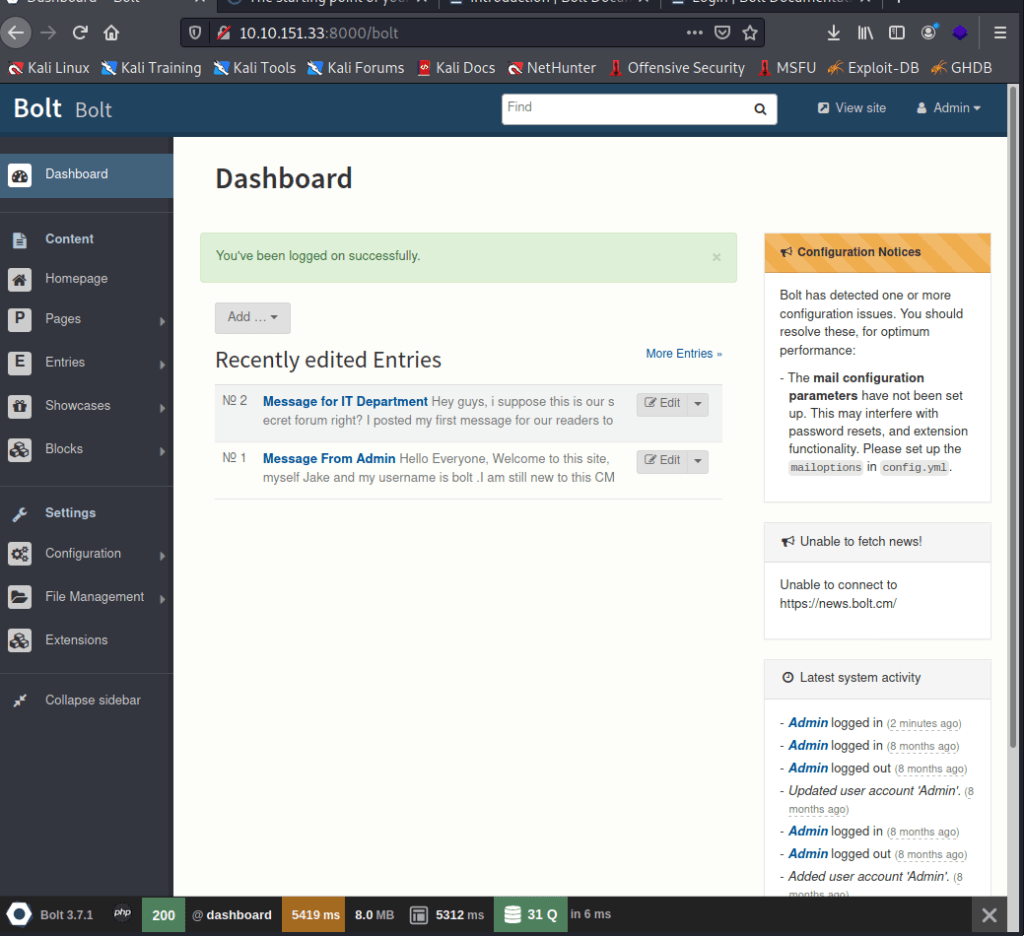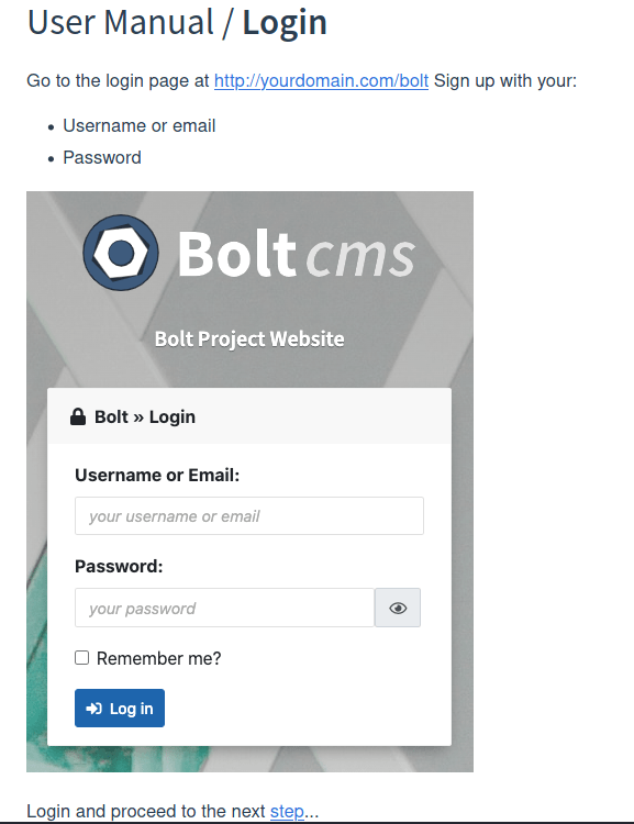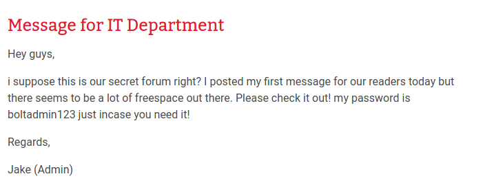 Chúng ta sẽ thử sử dụng username và mật khẩu đã tìm được là bolt:boltadmin123 để đăng nhập thử xem nhé.