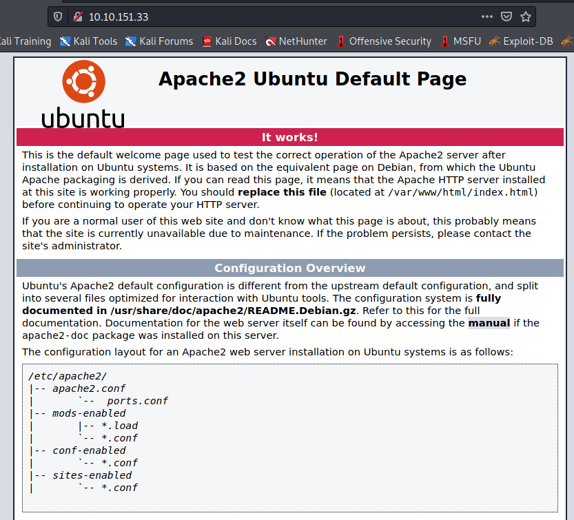 Phát hiện 2 ports 80 và 22. Mình dự đoán có thể đây port 80 sẽ chạy HTTP service và port 22 chạy SSH. Trong thời gian chờ đợi Nmap chạy, chúng ta sẽ kiểm tra thử port 80 bằng trình duyệt Firefox trên Kali Linux nhé. (Các bạn nhảy xuống phần 1C nhé)