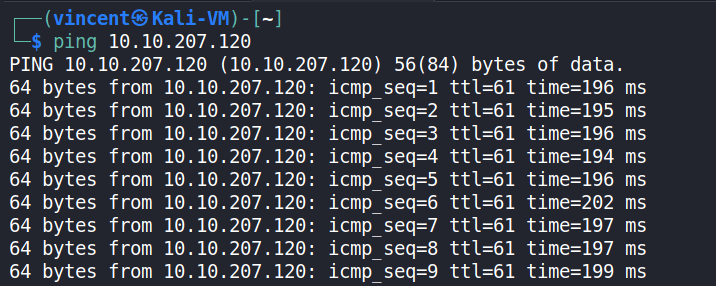 Ping mục tiêu thành công, chúng ta sẽ bắt đầu quét mục tiêu với Nmap.