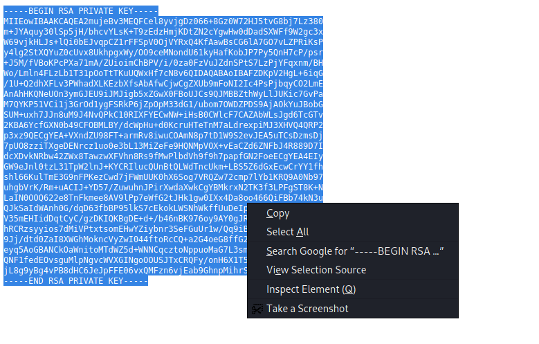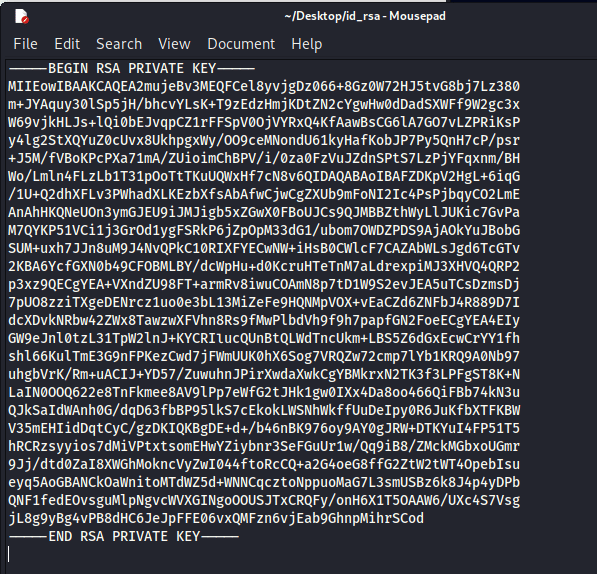 Khi click vào file id_rsa, chúng ta được kết quả sau: