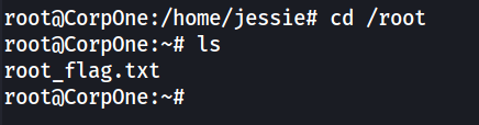Chúng ta chuyển đến directory /root và sẽ thấy file root_flag.txt file ở đây.