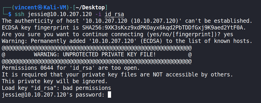 ssh jessie@10.10.207.120 -i id_rsa