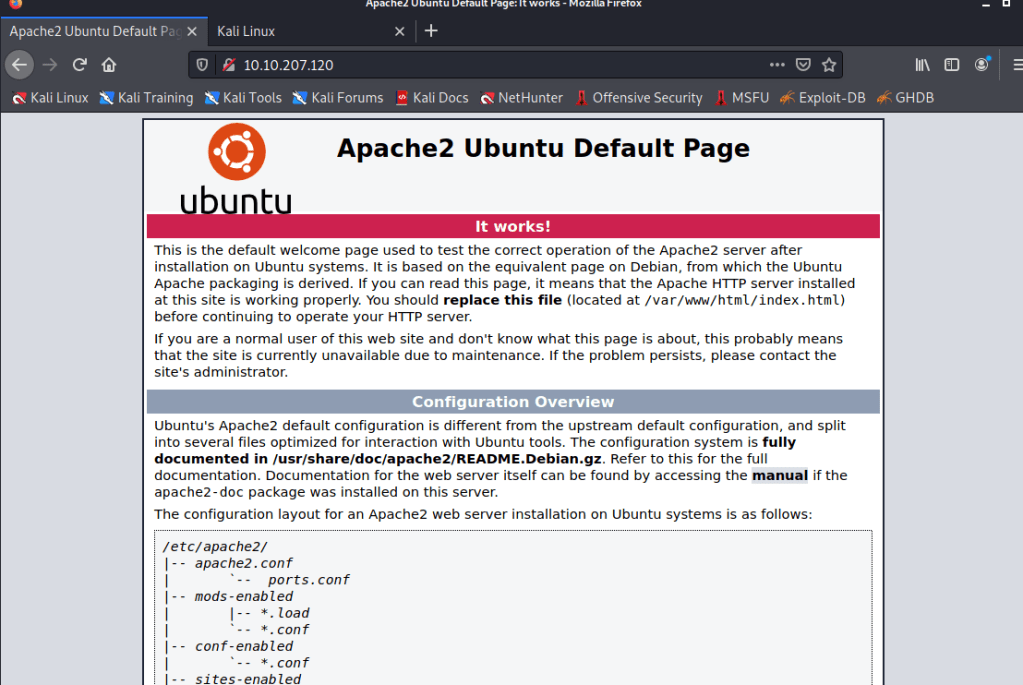 Sau khi truy cập, chúng ta thấy giao diện chính là trang mặc định Apache2.