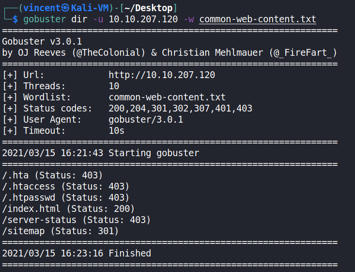 gobuster dir -u 10.10.207.120 -w common-web-content.txt