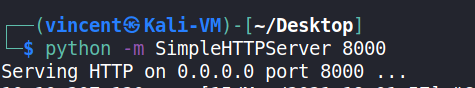 Trên máy Kali Linux, chúng ta sẽ chạy câu lệnh bên dưới để tạo HTTP server cho mục đích chuyển file: